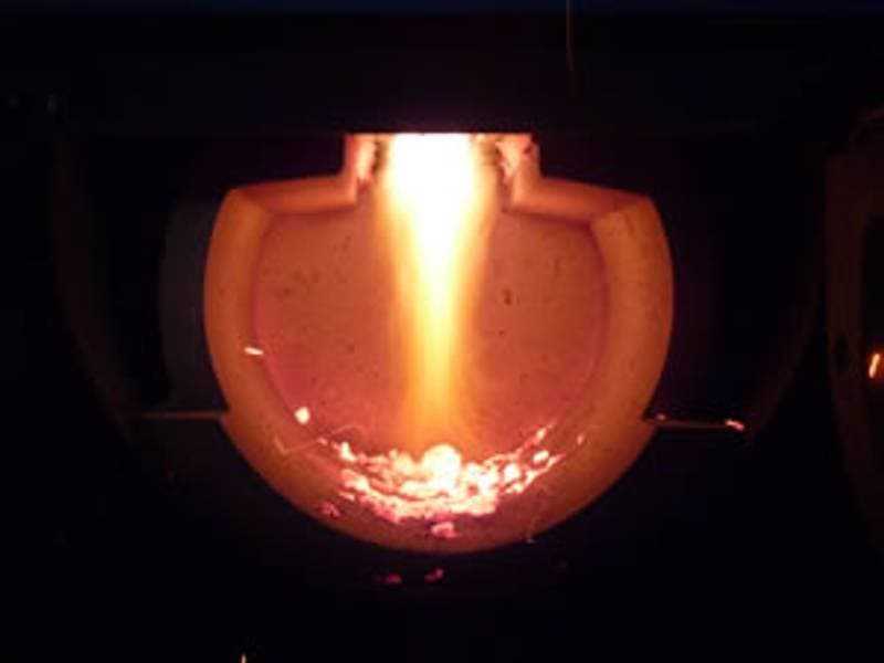 Vedkjele med sugevifte, stål forbrenningskammer og keramisk etterforbrenningskammer.