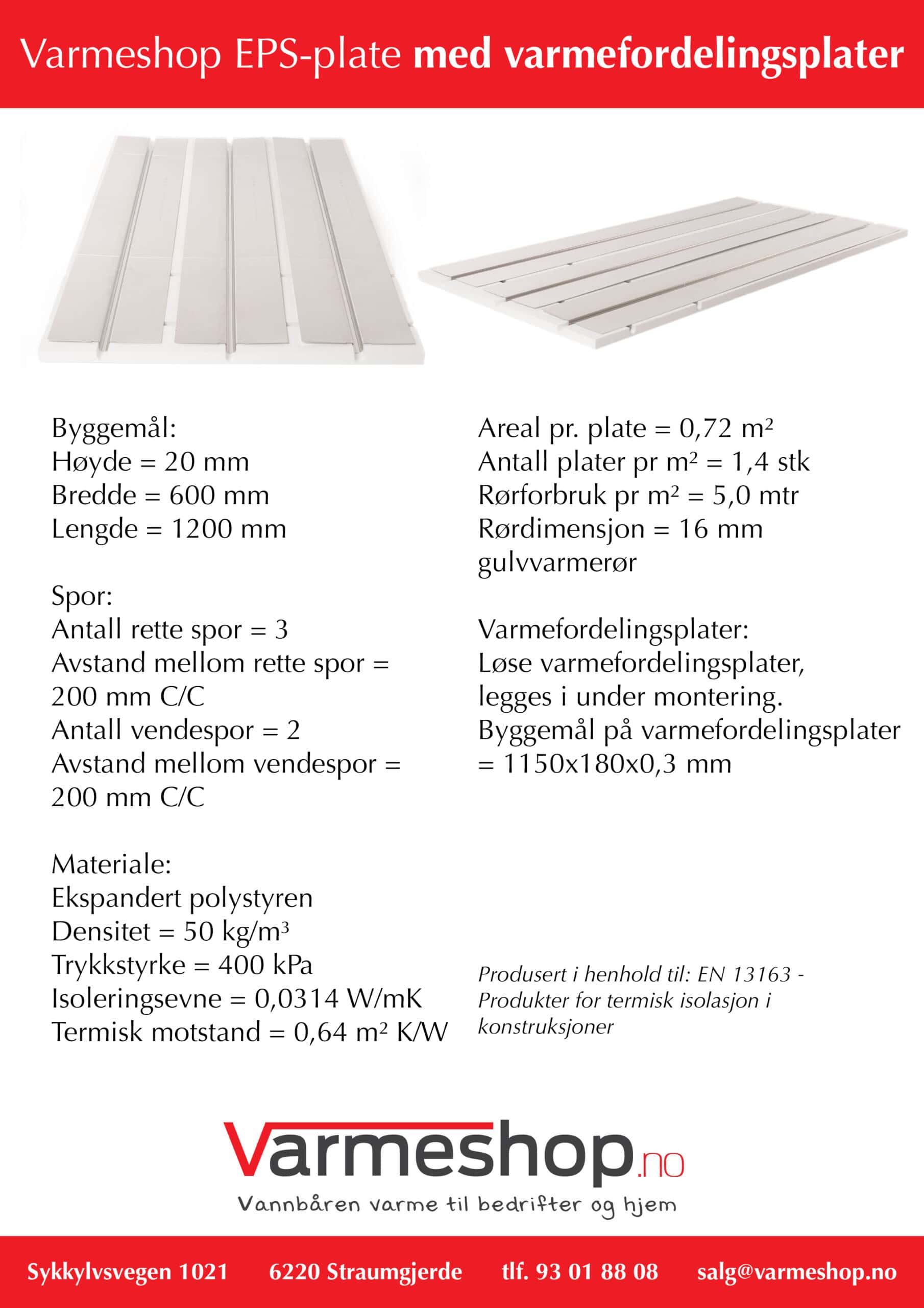 Pris EPS 400-plater ink. varmefordelingsplater: 399,- pr. kvm.