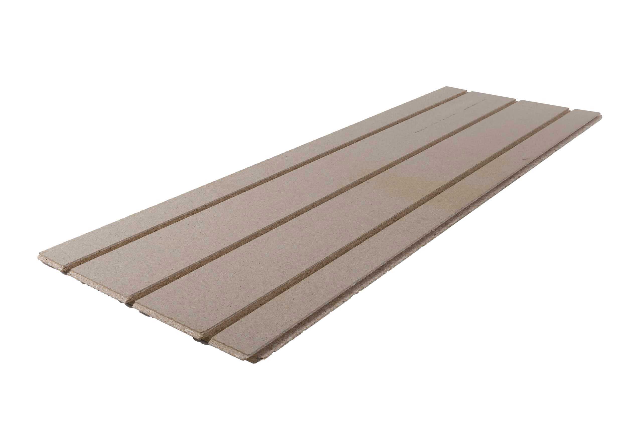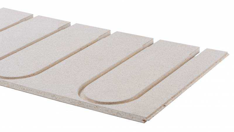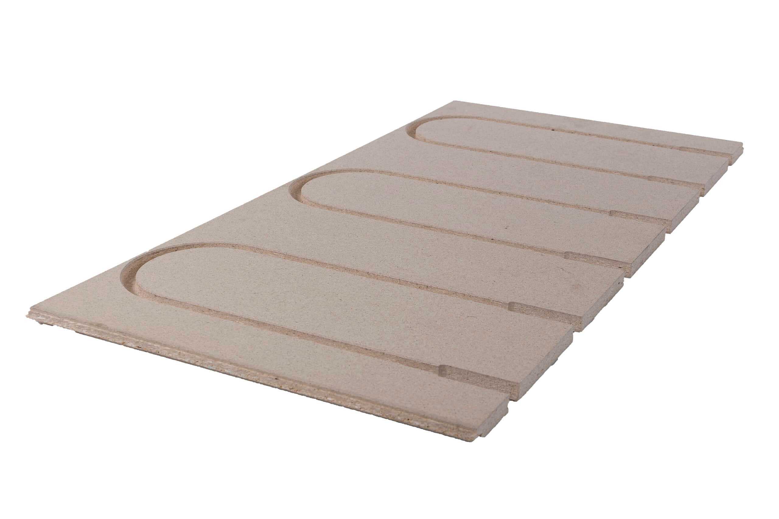 22 mm vendeplate i spon med spor for 16/17 mm gulvvarmerør fra Byggelit
