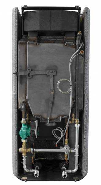 Ovnen leveres med nødkjølesett og performance kit montert på ovnen. Rørsystemene er trykktestet, pumpe og termostat er funksjonstestet. Ovnen er klar for tilkobling av rør og strøm (se bilde). Dette gjør det enkelt for rørlegger og elektriker!