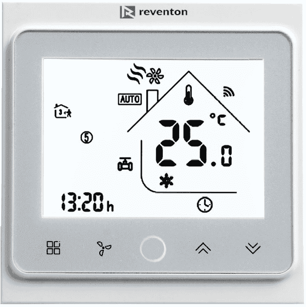 Den brukes til å kontrollere driften av en tretrinns vifte og på/av-ventilaktuatoren basert på forskjellen mellom temperaturen som er innstilt på enheten og temperaturen målt i rommet. Kontrolleren muliggjør drift i varme-, kjøle- eller ventilasjonsmodus. Enheten har en intuitiv berøringskontrollert LCD-skjerm. Kontrolleren kobles til en dedikert applikasjon der du kan styre enheten fra din egen smarttelefon.