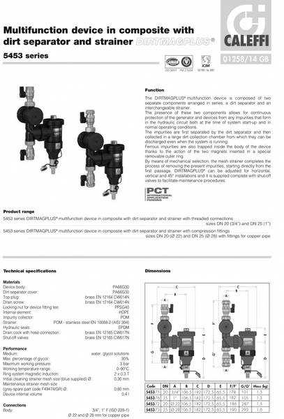 Caleffi 28 mm alt i ett filter for vannbåren varme