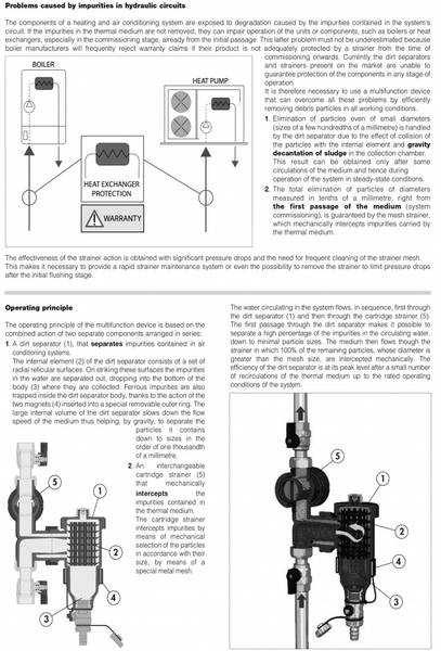 Dette filter er et kombinert magnetfilter og mikrobobleutskiller, som i tillegg har et innebygget smussfilter. Filteret kan monteres på vertikale og horisontale rørstrekk, og har absolutt alle funksjoner som er nødvendigt på et vannbårent varmeanlegg. Her er det mye for pengene!