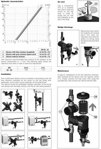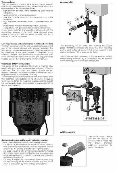 Leveres med klemringkoblinger for 28 mm kobber/stål/alupex rør. Enkel rensing av smussfilter og gjennomspyling av magnetfilter.