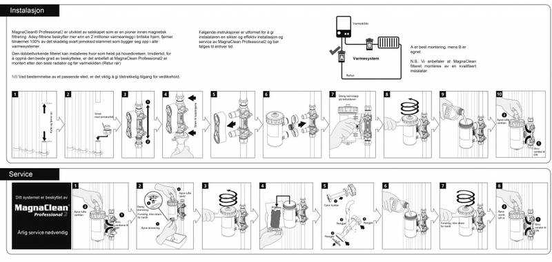 Magnaclean MC2 magnetfilter for varmeanlegg med 1″ gjenger og fleksible tilkoblinger.